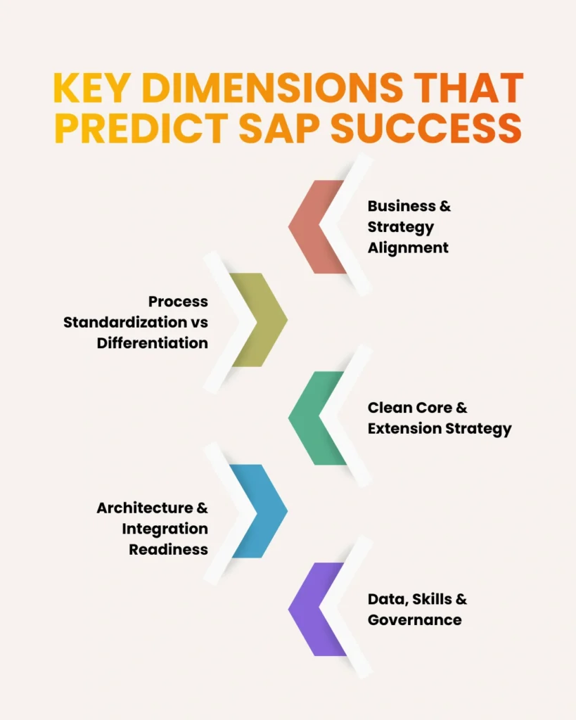 A future-proof SAP Digital Maturity Assessment would then need to assess maturity from numerous interconnected angles if it is to predict success. Each of them, ignored on its own, produces a blind spot.